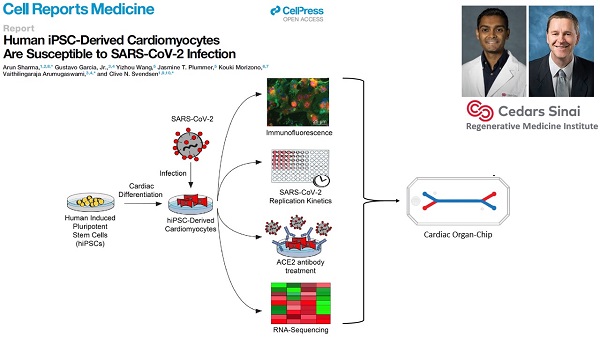 COVID-19 has caused the hospitalization of hundreds of thousands of people worldwide. Patients show lung symptoms, including cough, and shortness of breath. However, COVID-19 could also cause heart problems such as rhythm problems and heart failure. Heart injury is associated with increased risk of death. It is worth studying whether the virus can directly infect the heart. This will help develop new therapies against COVID-19. Investigators made human heart cells in a dish from stem cells and used these cells to show that human heart cells can be directly infected by the coronavirus. Investigators also developed a drug screening system that can identify new drugs against COVID-19. They detected key proteins involved in pathways critical to SARS-CoV-2 infection and demonstrated potent antiviral activity using berzosertib. In summary, this study helped to understand the mechanisms of SARS-CoV-2 infection, and to develop novel antiviral approaches for alleviating COVID-19.