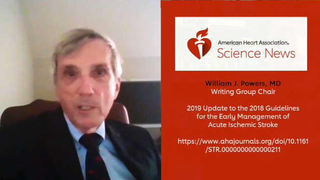 William J. Powers, writing group chair, announces the 2019 Update to the 2018 Guidelines for the Early Management of Acute Ischemic Stroke.